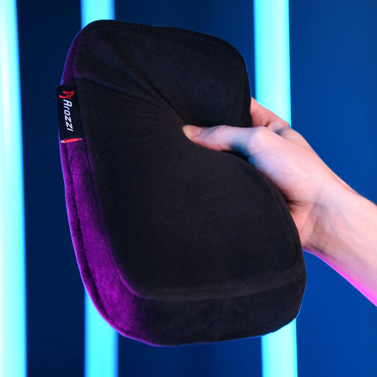 Die Polsterung besteht aus 100 % Memory-Schaum und passt sich bequem an Arm und Ellbogen an, um Druckpunkte zu entlasten. Der Bezug besteht aus atmungsaktivem Samt-Polyester.