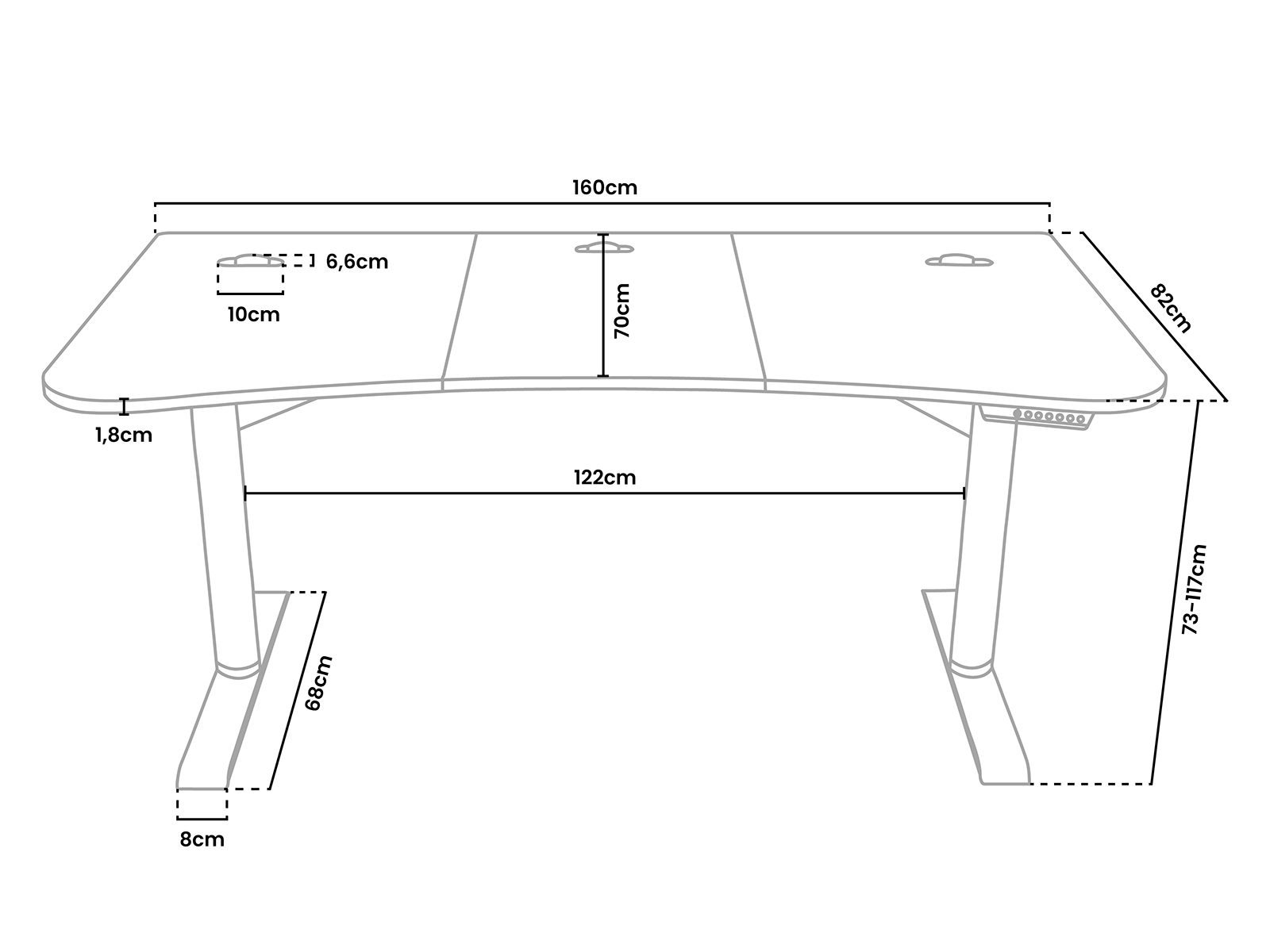 Avec une simple pression sur un bouton, vous pouvez ajuster la hauteur du bureau Arena Moto. Que vous souhaitiez travailler assis ou debout, l'Arena Moto électrique est fait pour vous.