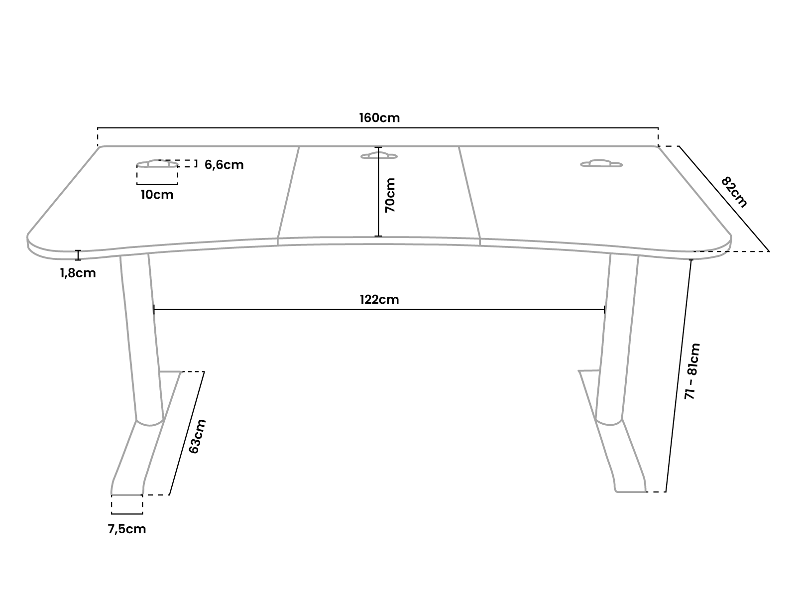Il est équipé de trois découpes pour la gestion des câbles ainsi que d'un panier en filet pratique sous le bureau pour organiser vos câbles de manière ordonnée. Grâce à son design robuste et durable, l'Arena Bureau Gaming est le choix ultime pour les joueurs en quête d'un setup gaming haut de gamme.
