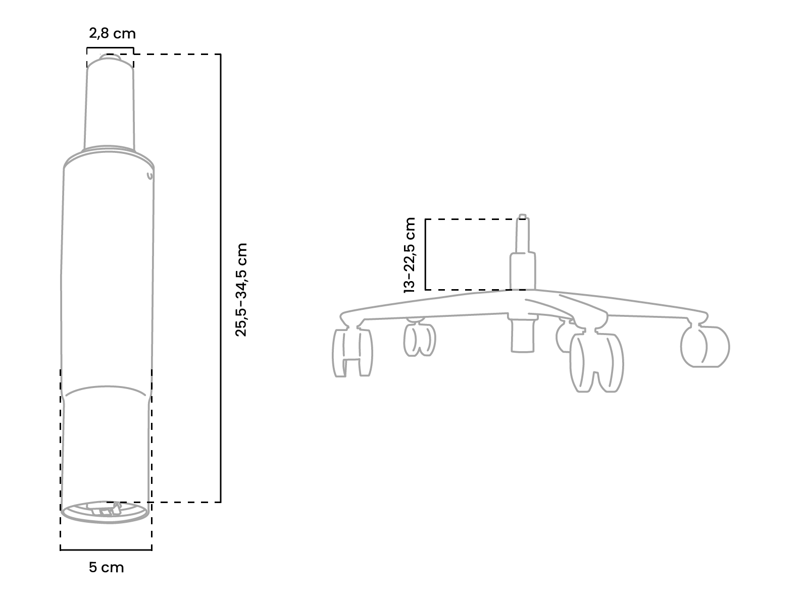 To ensure that the height is close to your current chair, measure the distance from the top of your chair’s wheelbase to the top of its gaslift, and compare it to the measurements provided below.