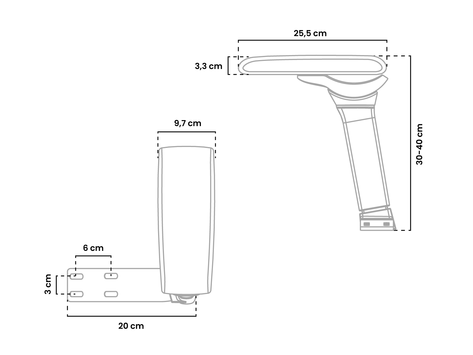 This package contains two Armrests (left and right side). They are compatible with most chairs that have armrests attached with four screws underneath the seat. Check the measurement sketch and compare it with your chair to make sure it fits beforehand!