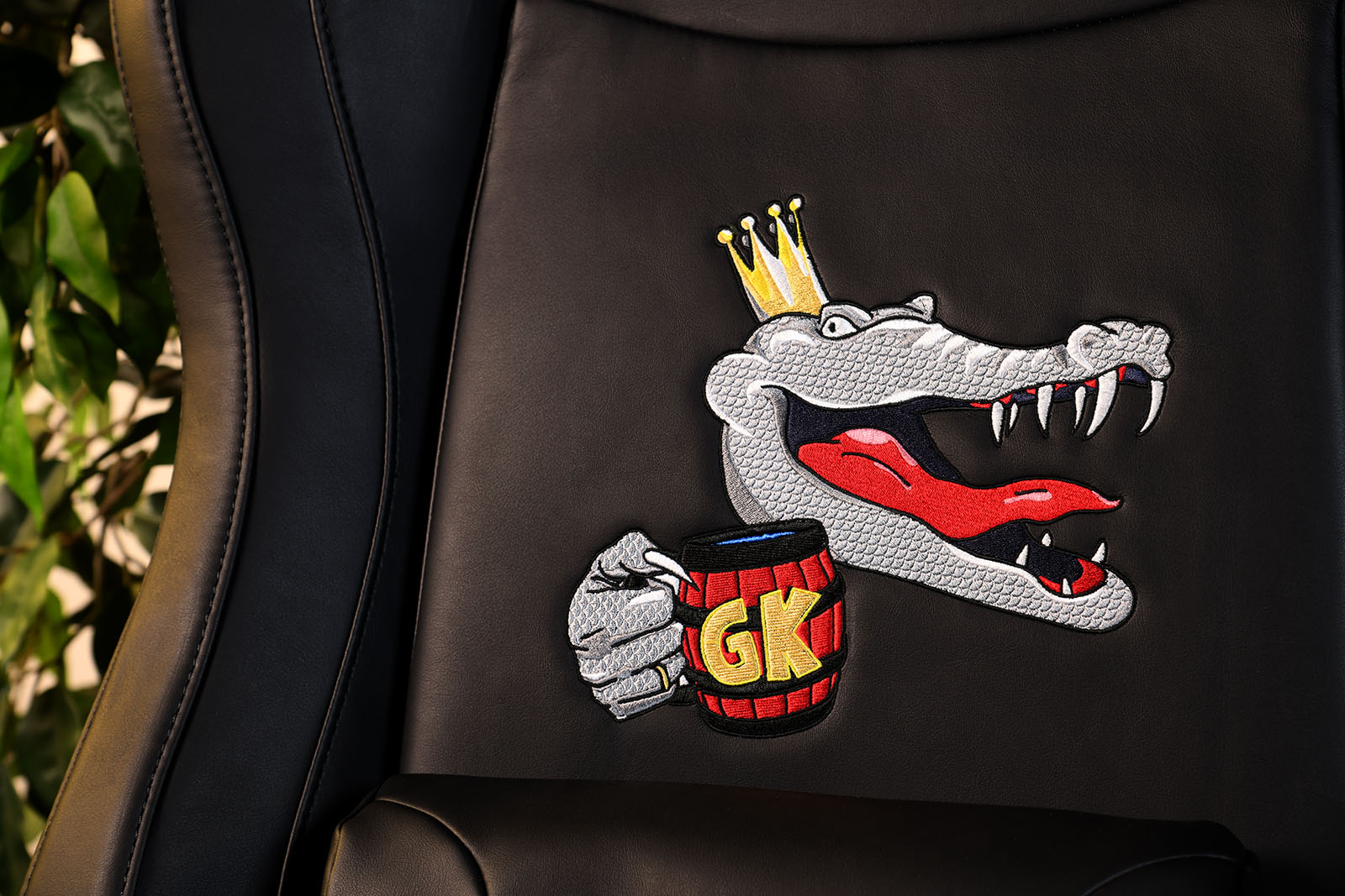 Vernazza XL Supersoft och SoftPU kan broderas både på framsidan och baksidan av stolen.