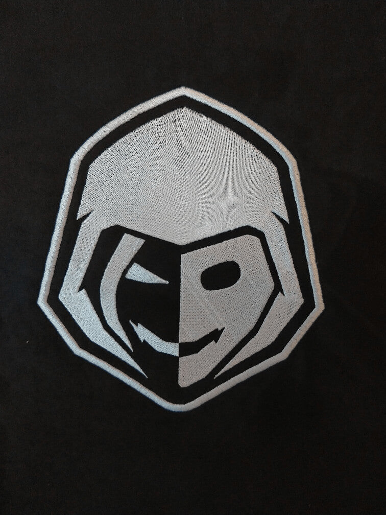 Här kan du se ett annat exempel på hur en design kan göras om till ett broderi. I det här fallet bestämde vi oss för att bara sy de svarta färgerna för att verkligen få det att sticka ut mot det vita SoftPU Leather.
