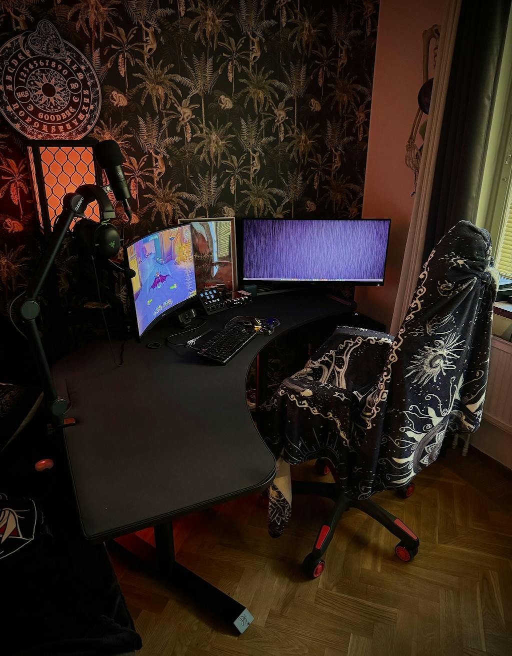 Byggd för komfort och uthållighet, Arena Angelo har en rymlig, ergonomisk design som är idealisk för flera bildskärmar, kringutrustning och alla dina spelbehov.