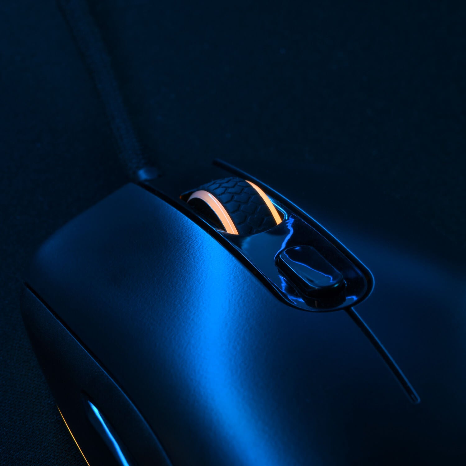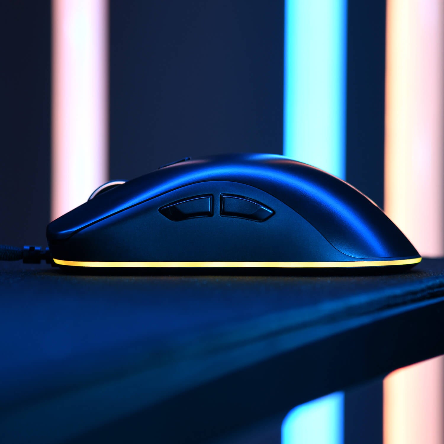 Arozzi Favo 2 Gaming-mus är utrustad med Pixart 3389-sensor, Omron 20M-brytare och 6 knappar. Favo 2 har även anpassningsbar RGB-belysning, både i bottenpanelen och logotypen på baksidan, som enkelt kan styras direkt på musen eller med vår programvara.
