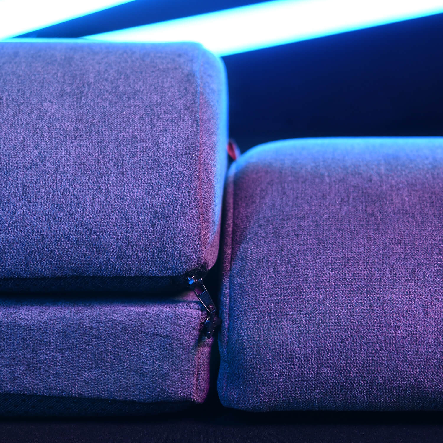 100 % memory foam-dämpning, överdrag i sammetspolyester eller Soft Fabric™, halkfri gummibotten