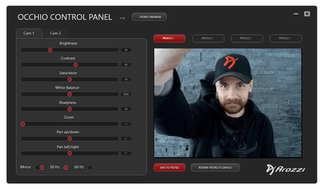 Arozzi Occhio är den första webbkameran i sitt slag som erbjuder äkta integritet. Andra webbkameror på marknaden erbjuder endast en mjukvarubaserad ljudavstängningsfunktion, vilket gör dem sårbara för hackning. Occhio introducerar en manuell mikrofonbrytare, vilket gör det möjligt att uppnå äkta integritet med en enkel knapptryckning.