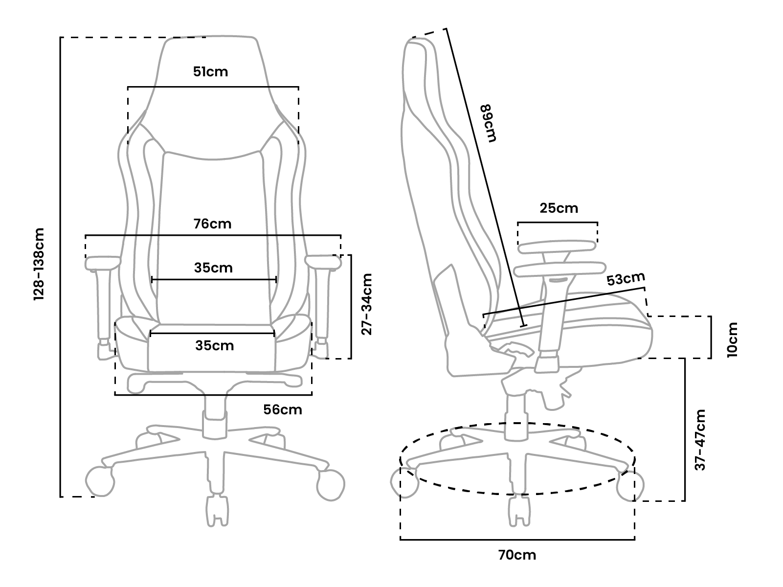 Vernazza XL är den största stolen som Arozzi erbjuder med en viktkapacitet på 170 kg (375 lbs.) och det mest rymliga ryggstödet och sätet. Detta är det perfekta valet för större och längre individer eller de som bara njuter av extra utrymme.