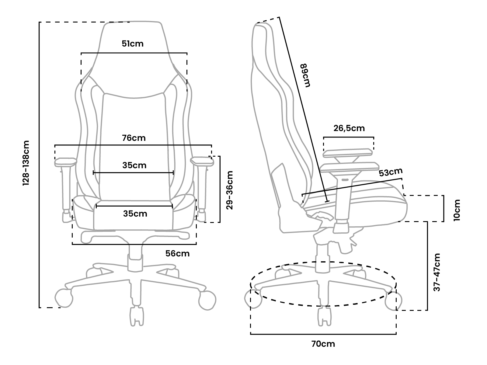 Vernazza XL är den största stolen som Arozzi erbjuder med en viktkapacitet på 170 kg (375 lbs.) och det mest rymliga ryggstödet och sätet. Detta är det perfekta valet för större och längre individer eller de som bara njuter av extra utrymme.